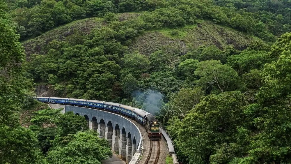 This route is scenic for many reasons; the very first and the most iconic one being, the 13-arc bridge (aka Pathimoonnu Bridge). The train on this route travels through this beautiful 108-year-old bridge. This bridge got the name 13 arc because it travels through the 13 arches. While crossing this bridge you will not be able to help but be awed by the architectural marvel of this bridge. Apart from this, you will travel through the forests of Kerala (which are still untouched by the influence of modernization!) and see cardamom hills and moss-blanketed bridges. This is the best train route to Tamil Nadu from Kerala. This train ride will be a perfect end if you went for your honeymoon in Kerala!